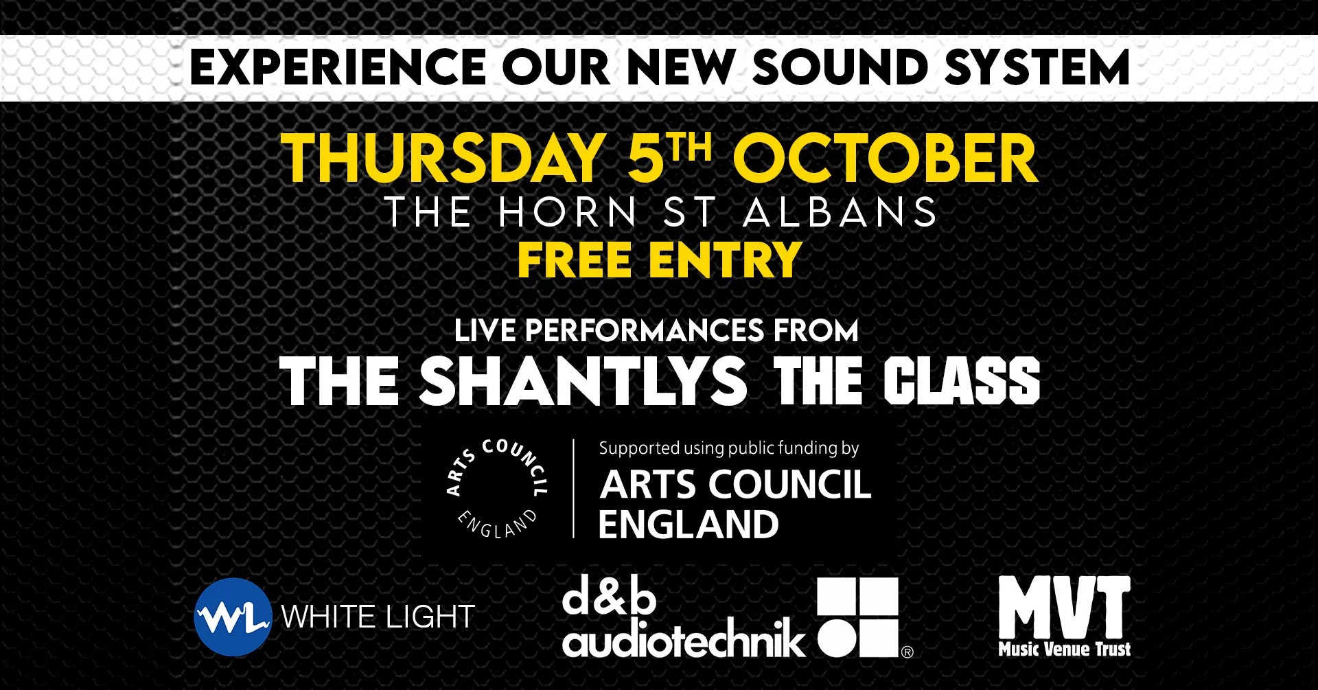 We're excited to announce that The Horn in St Albans has just gotten a brand new sound system! Thanks to a generous grant from Arts Council England and amazing support from Music Venue Trust we've been able to invest in state-of-the-art equipment to provide our audiences with the best possible listening experience.